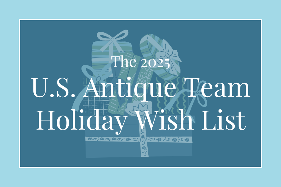 One of the key perks of working on the U.S. Antique Show team is that we get to be surrounded by beautiful things. While ogling our dealer’s cases and stands is just a fraction of what we do all year, everyone on the team feels rewarded when we finally get on show site and we get to wander the aisles of our shows and see items sourced from across the globe. Though there are, admittedly, varying levels of knowledge among the team, as you can see from this Holiday Wish List we’ve compiled, there is no shortage of taste and style!