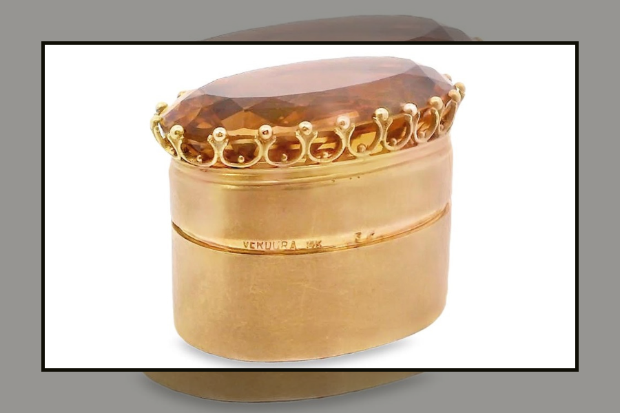 In addition to navigating austerity measures in metals, depressive economic conditions meant that gemstones were also in short supply, so many pieces designed during this time were very metal intensive. Alternatively, we began to see the incorporation of less expensive gemstones such as topaz, amethyst, aquamarine and citrine, with diamonds being reserved largely as pavé and accent stones. That inherent draw towards adornment persisted even during hard times, and many people would use their own gemstones and metals from jewelry they already owned for commissions of new pieces in keeping with the current fashions.